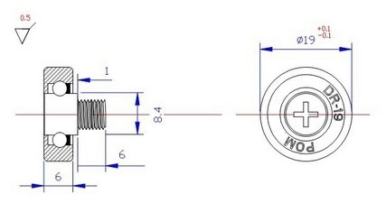 DR19-C1L6 desk office cabinet drawer roller M6x19x6mm
